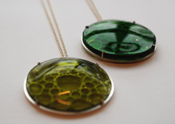 Series of 2 necklaces, Materials: Silver, recycled glass, 2009
