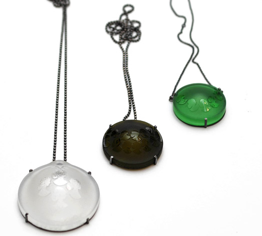 Materials: Silver, recycled glass from vine bottles , 2010 - 2011 (Ø 60mm, Ø 48mm and Ø 14mm)