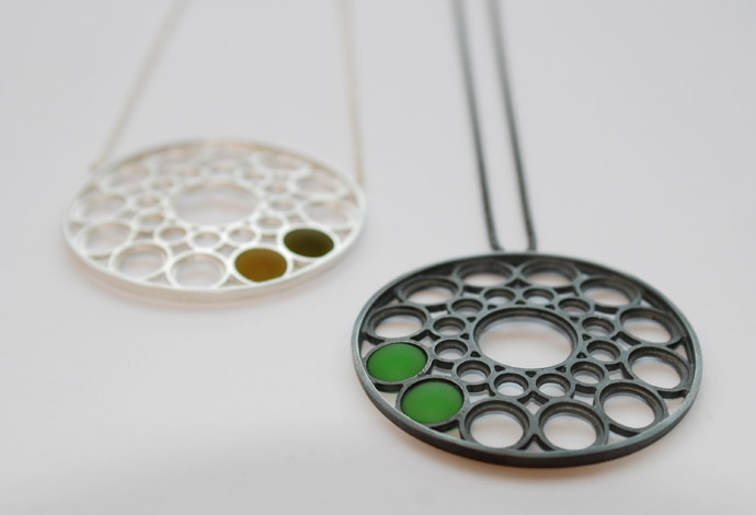 Series of 2 necklaces, Materials: Silver, recycled glass, 2009