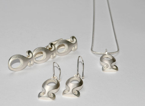 Necklace, earrings and tiepin, Material: Silver, 2009